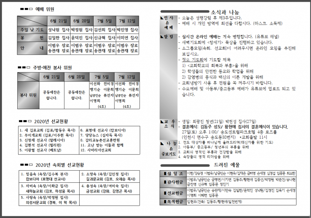 <자료> 2020년 6월 28일 주보 :: 다음 글