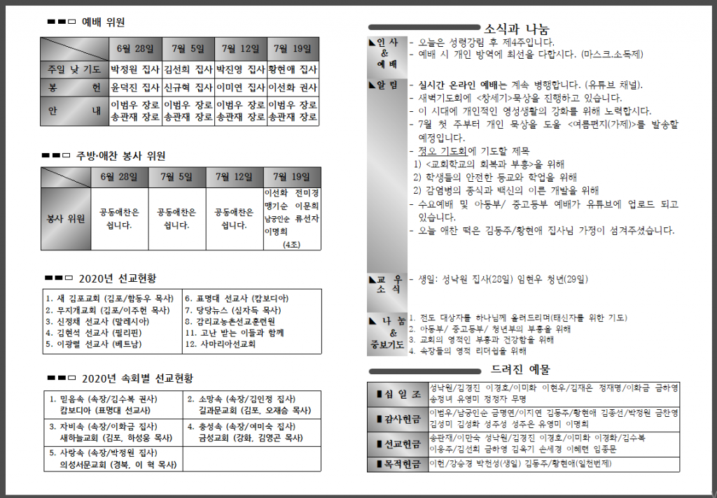 <자료> 2020년 7월 5일 주보 :: 다음 글