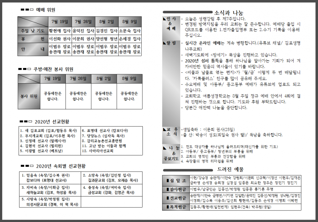 <자료> 2020년 7월 26일 주보 :: 다음 글