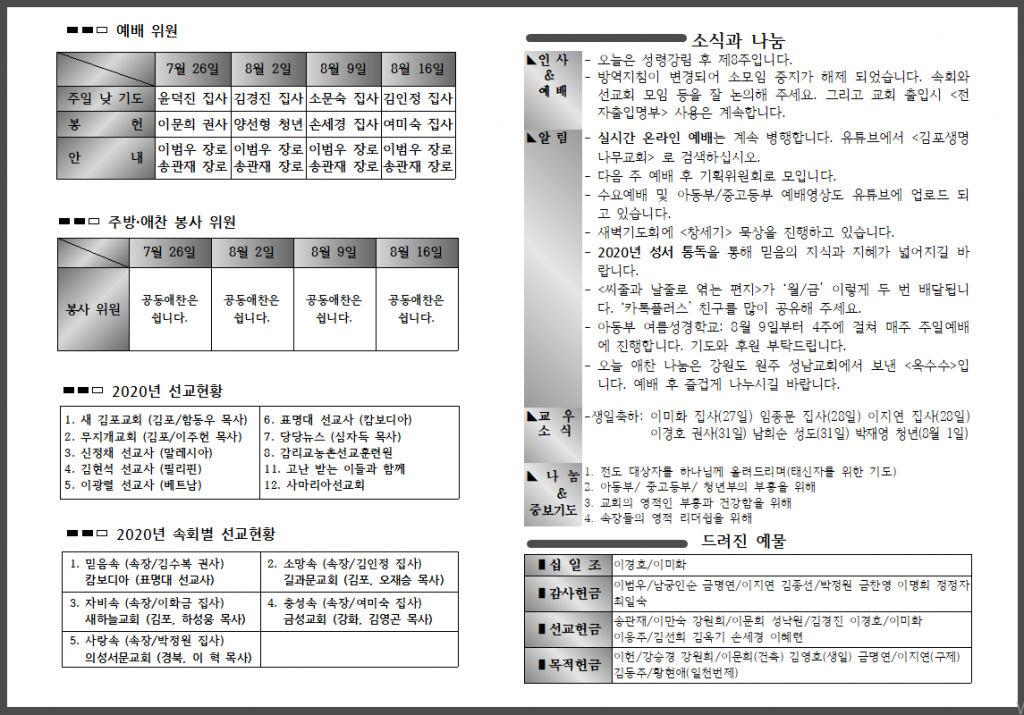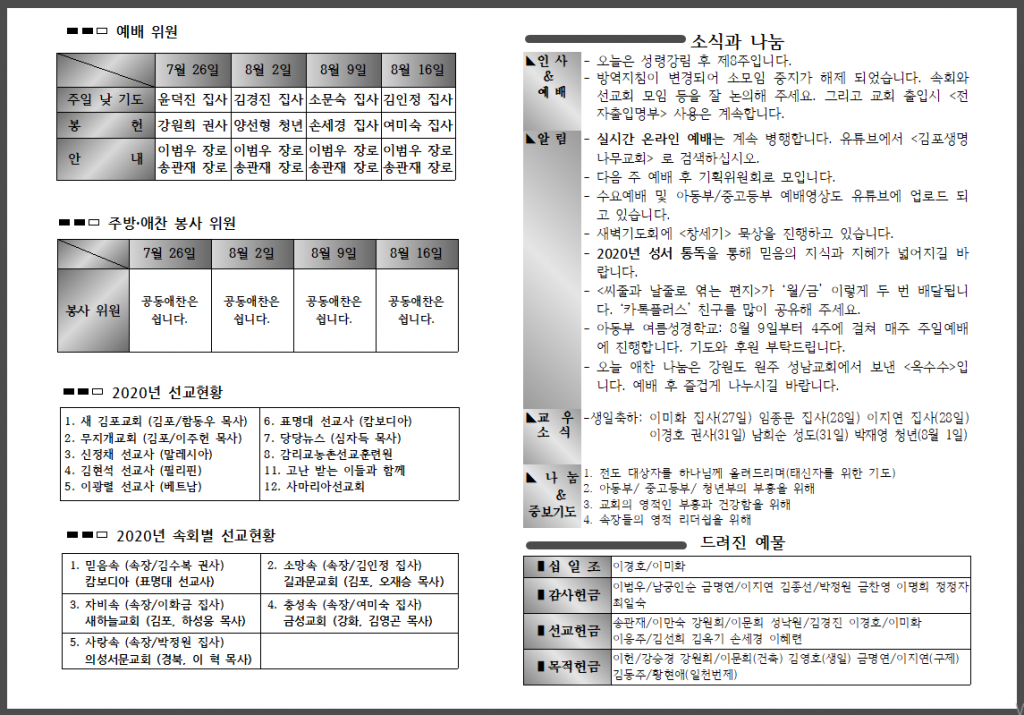 <자료> 2020년 8월 2일 주보 :: 다음 글