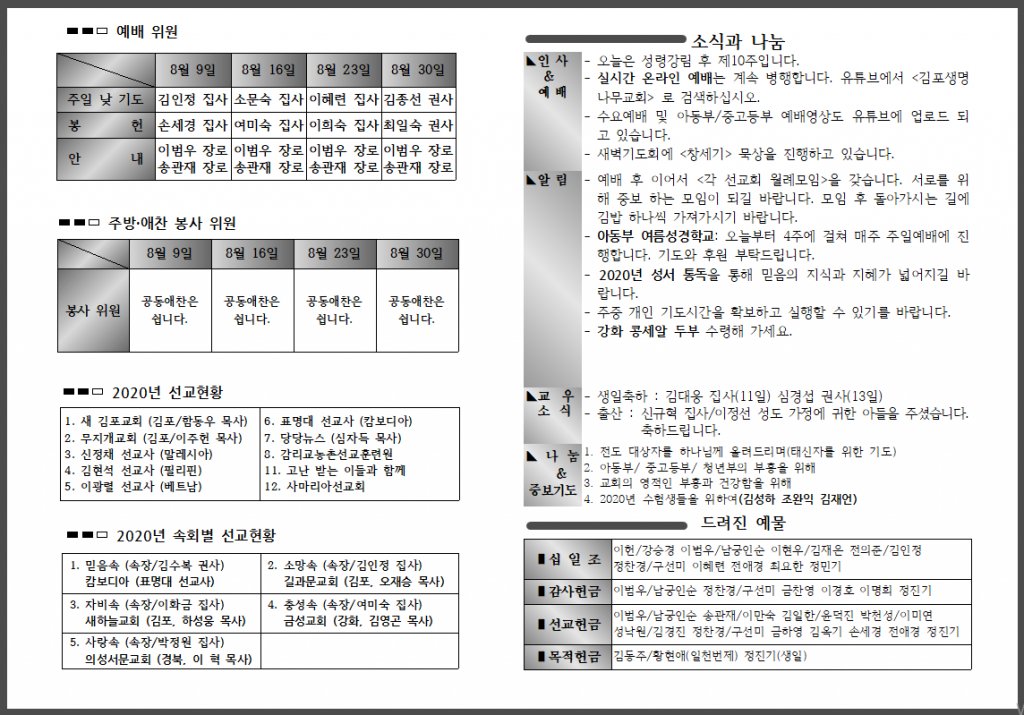 <자료> 2020년 8월 16일 주보 :: 다음 글