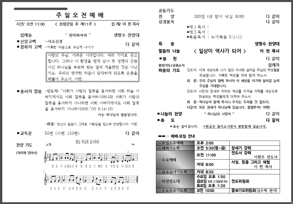 예배 안내