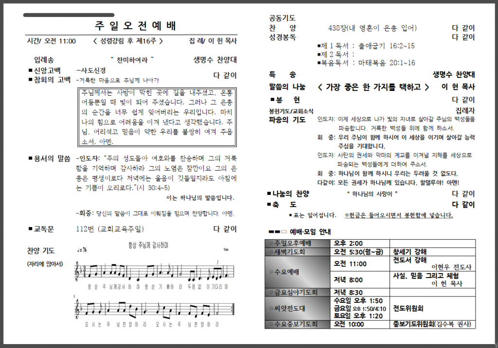 예배 안내