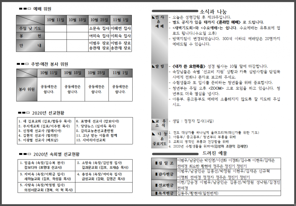 <자료> 2020년 10월 18일 주보 :: 다음 글
