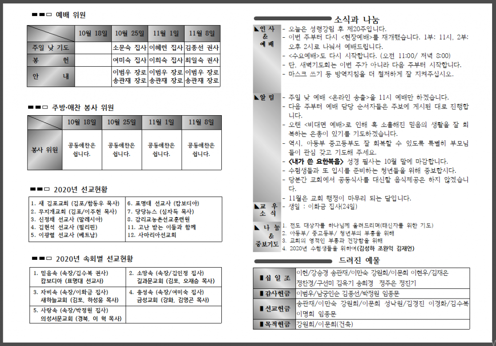 <자료> 2020년 10월 25일 주보 :: 다음 글