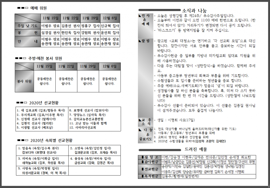 <자료> 2020년 11월 22일 주보 :: 다음 글