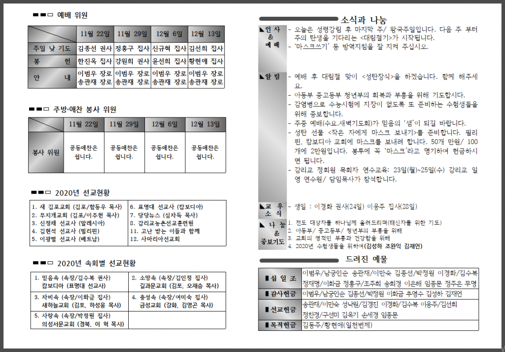 <자료> 2020년 11월 29일 주보 :: 다음 글