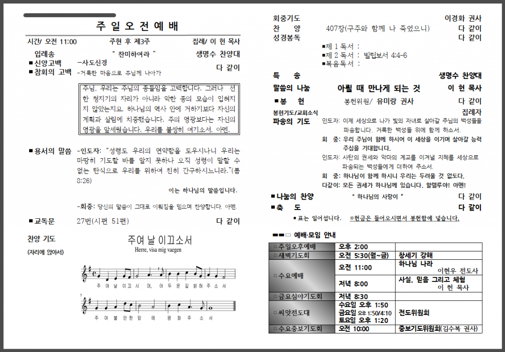예배 안내