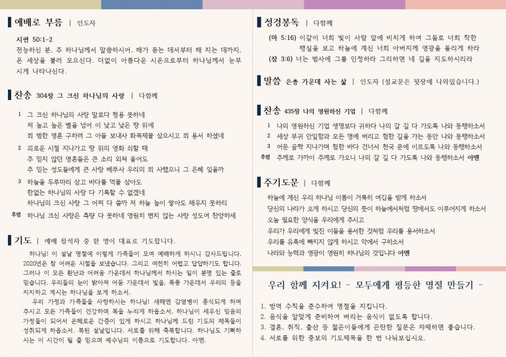 설 명절 가정예배문
