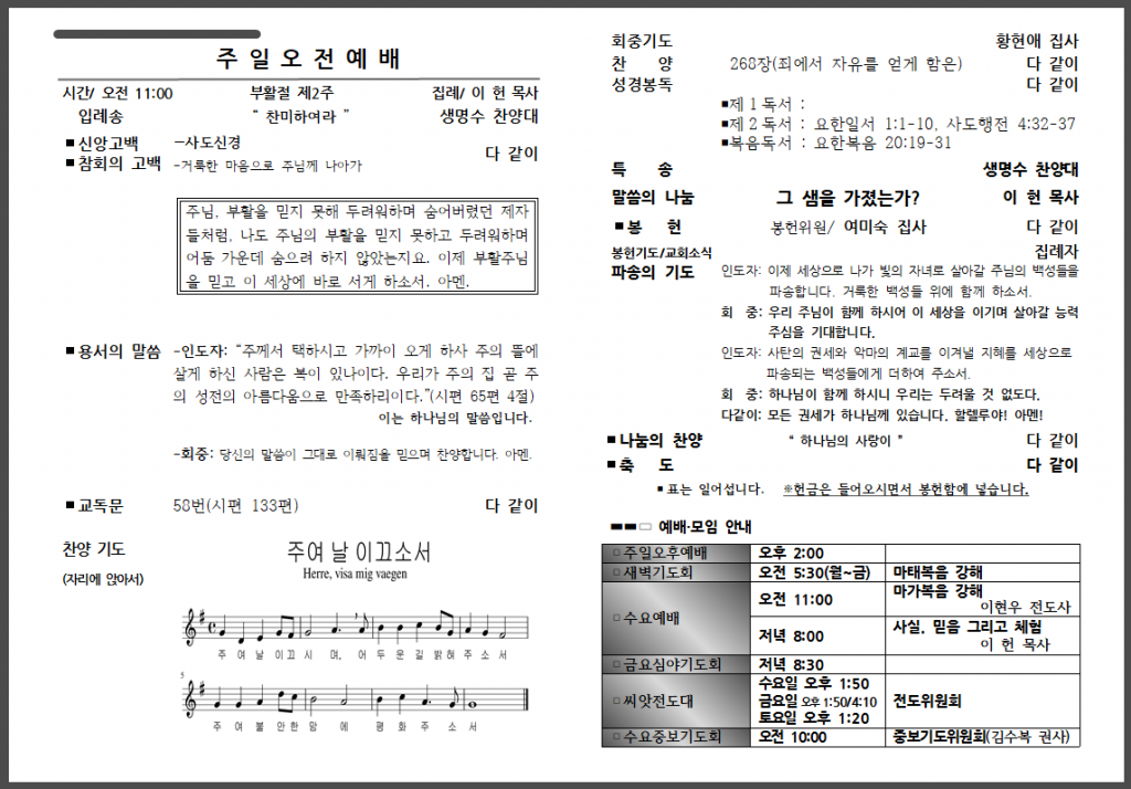 예배 안내