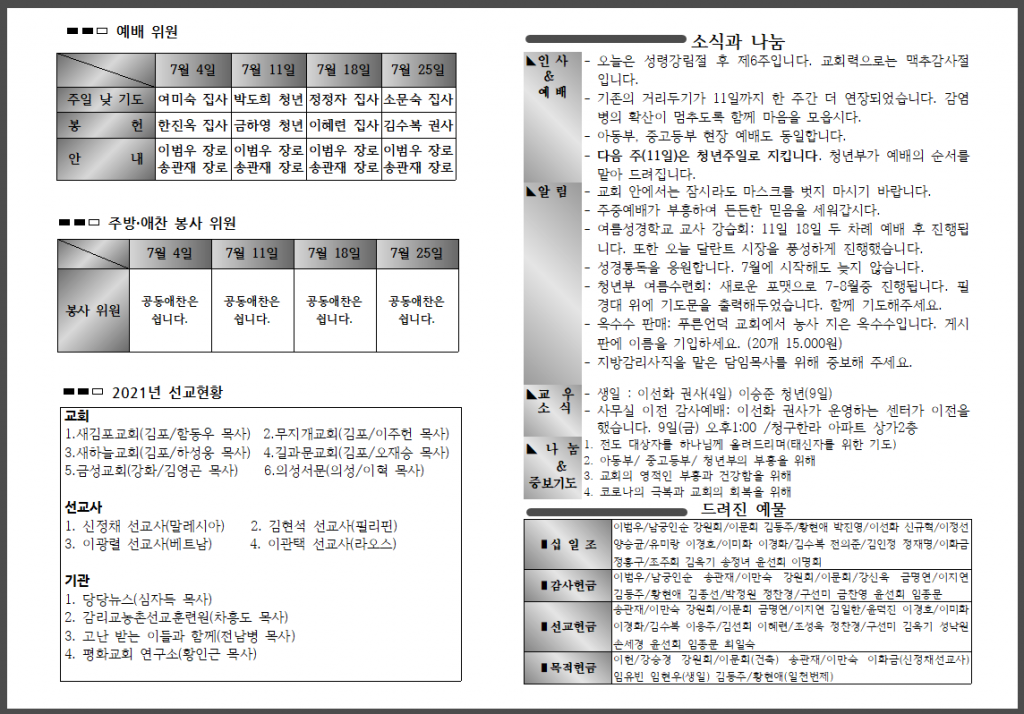 <자료> 2021년 7월 11일 주보 :: 다음 글