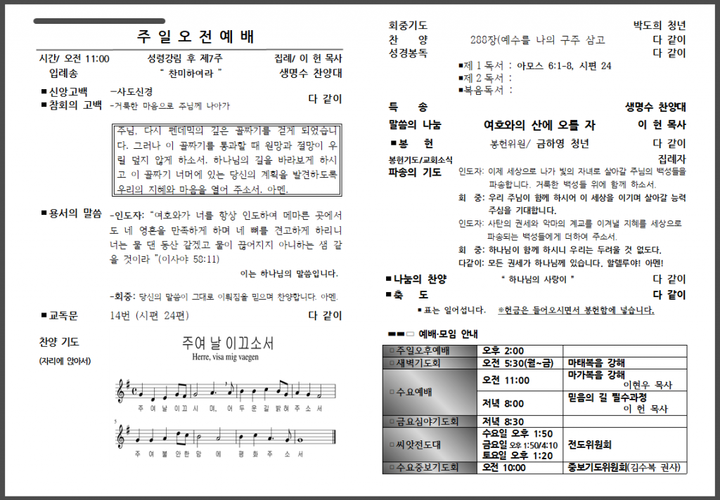 예배 안내