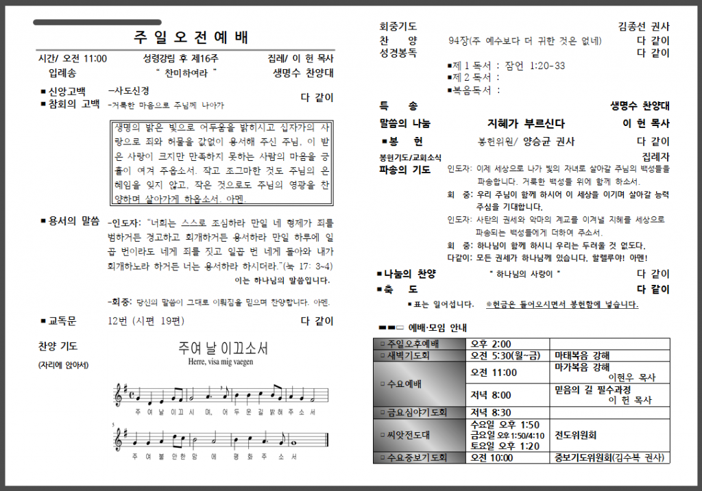 예배 안내