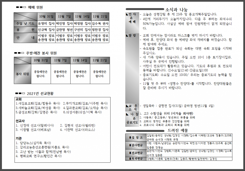<자료> 2021년 11월 7일 주보 :: 다음 글