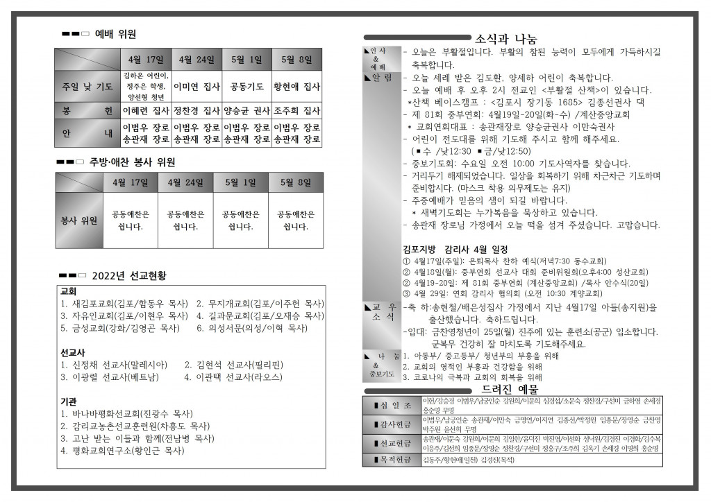 <자료> 2022년 4월 24일 주보 :: 다음 글
