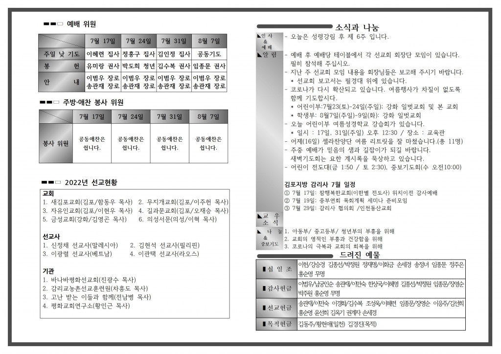 <자료> 2022년 7월 24일 주보 :: 다음 글