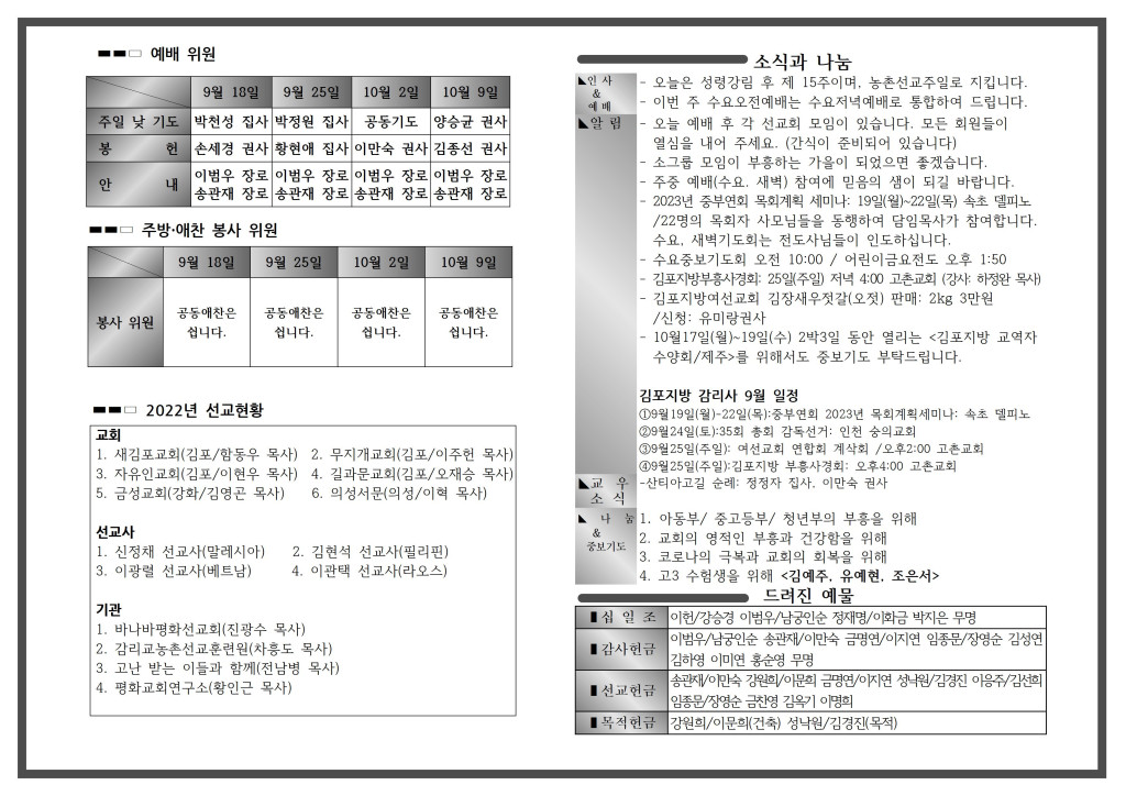 <자료> 2022년 9월 25일 주보 :: 다음 글