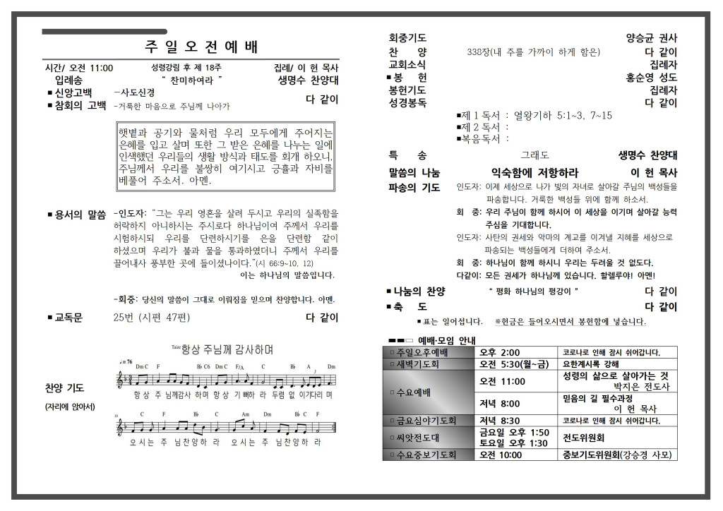 예배 안내