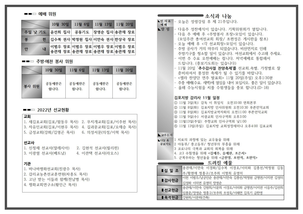 <자료> 2022년 11월 6일 주보 :: 다음 글