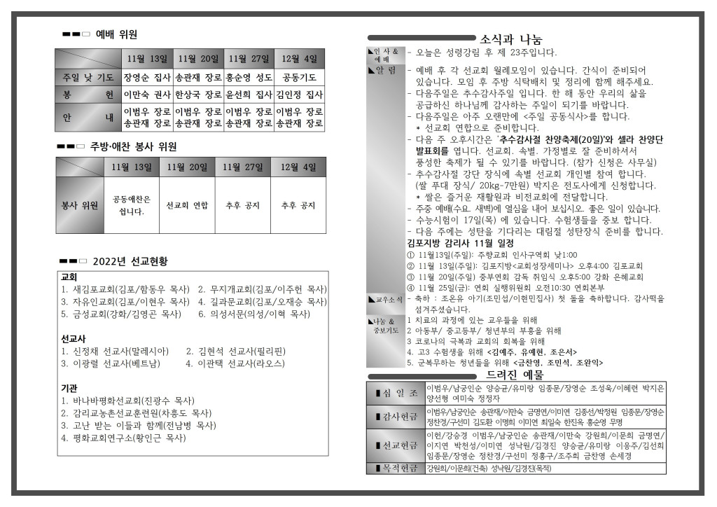 <자료> 2022년 11월 20일 주보 :: 다음 글