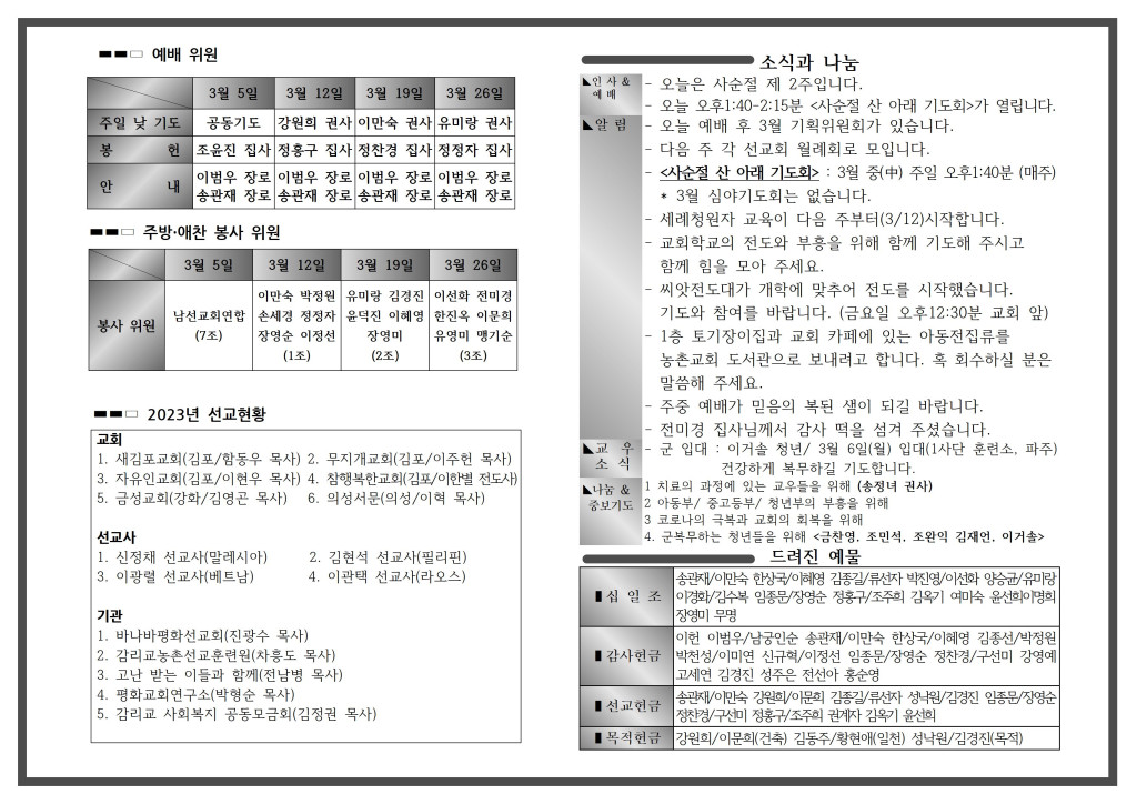 <자료> 2023년 3월 12일 주보 :: 다음 글