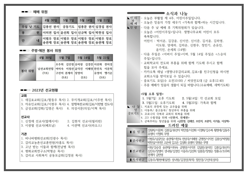 <자료> 2023년 5월 7일 주보 :: 다음 글
