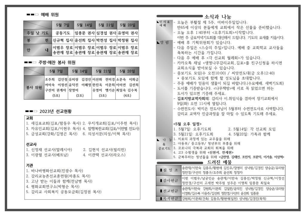 <자료> 2023년 5월 14일 주보 :: 다음 글