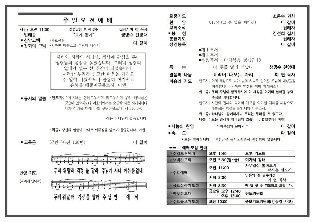 예배 안내