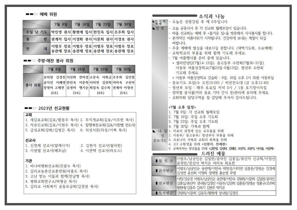 <자료> 2023년 7월 16일 주보 :: 다음 글