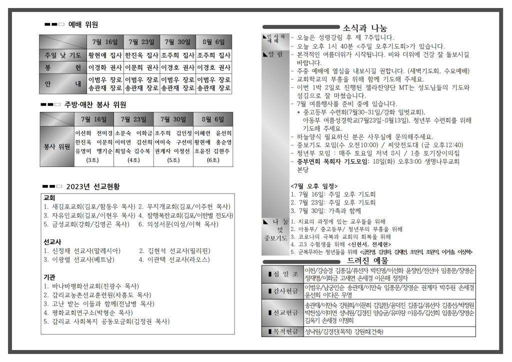 <자료> 2023년 7월 23일 주보 :: 다음 글
