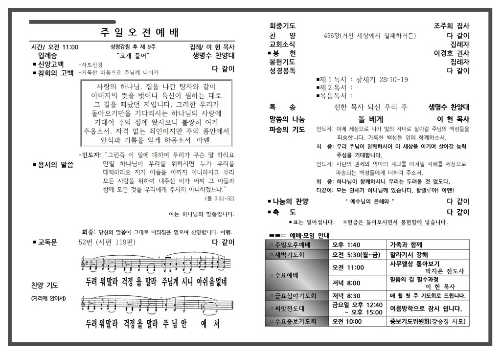 예배 안내