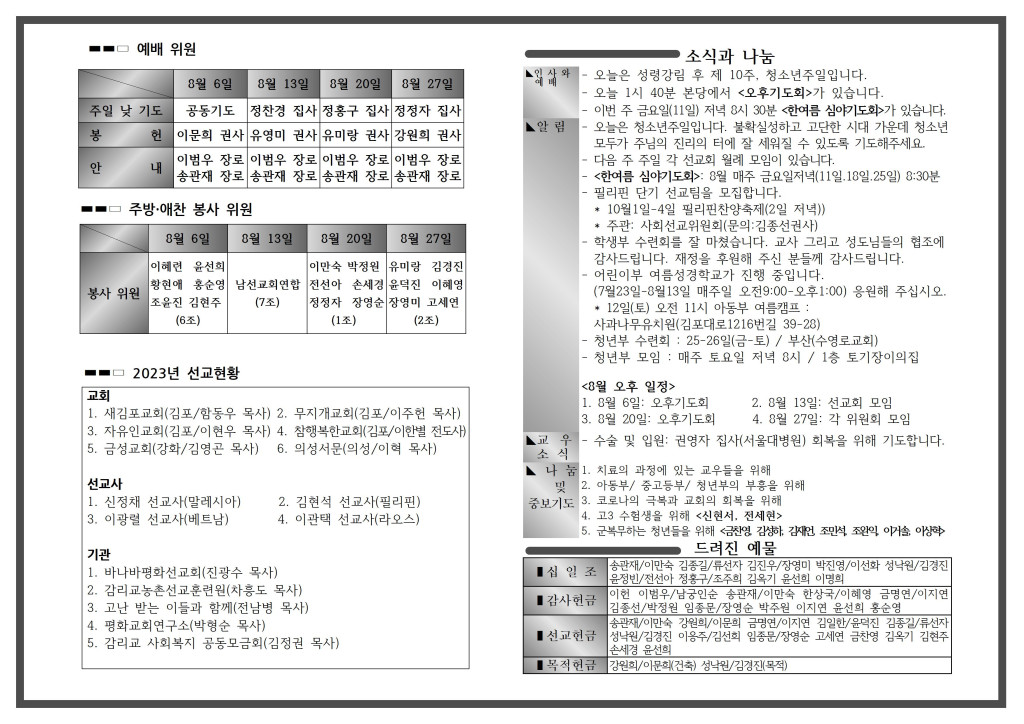 <자료> 2023년 8월 13일 주보 :: 다음 글