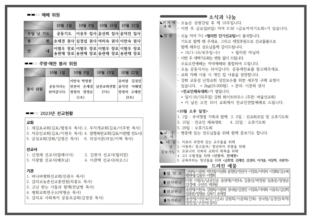 <자료> 2023년 10월 8일 주보 :: 다음 글