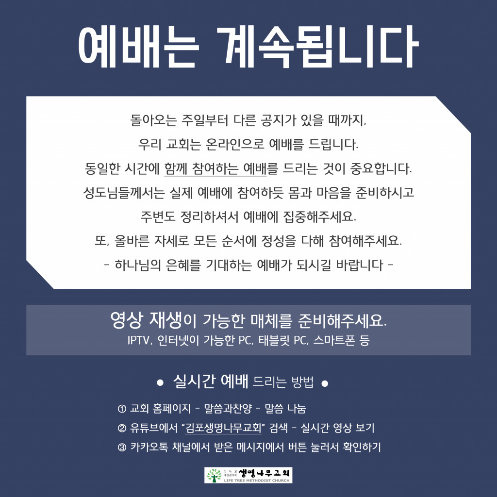 [공지] 2020년 3월 1일 주일예배 안내