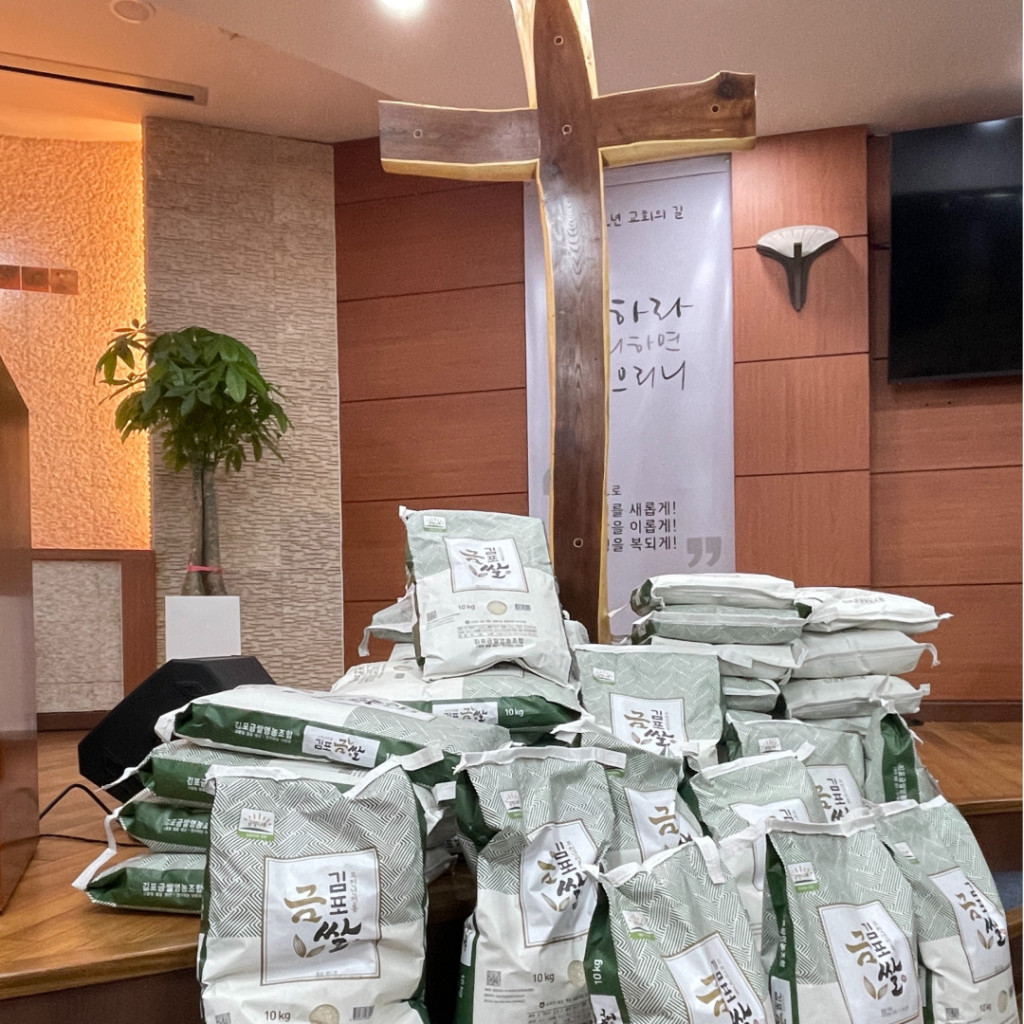 과일은 이후 처리가 곤란하다. 쌀이 감사절 이후 여러 곳에 나눔하기가 좋다.