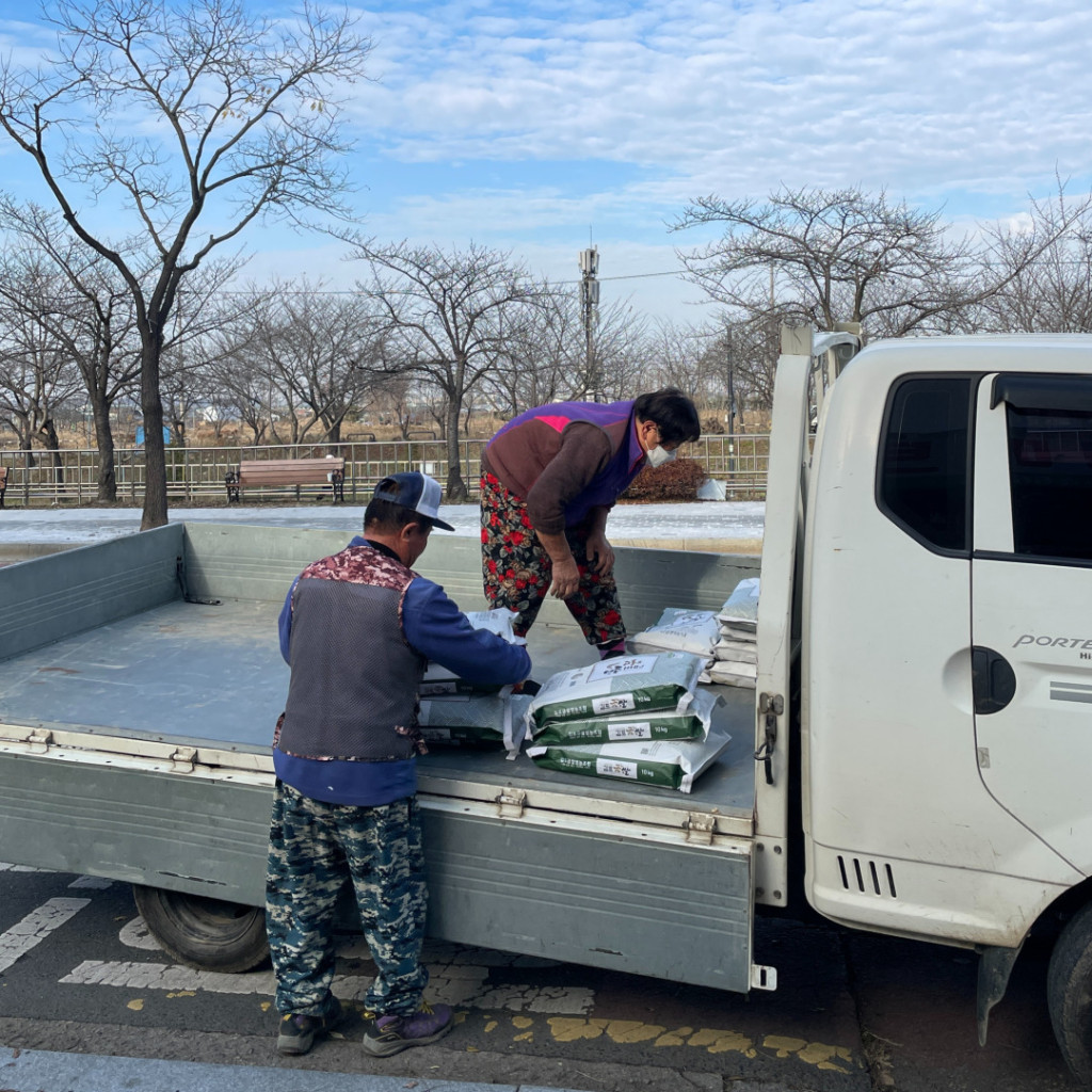 쌀을 싣고 오셔서 내리는 모습을 뵈니 세월의 흔적이 역력하시다. 강건하시길....