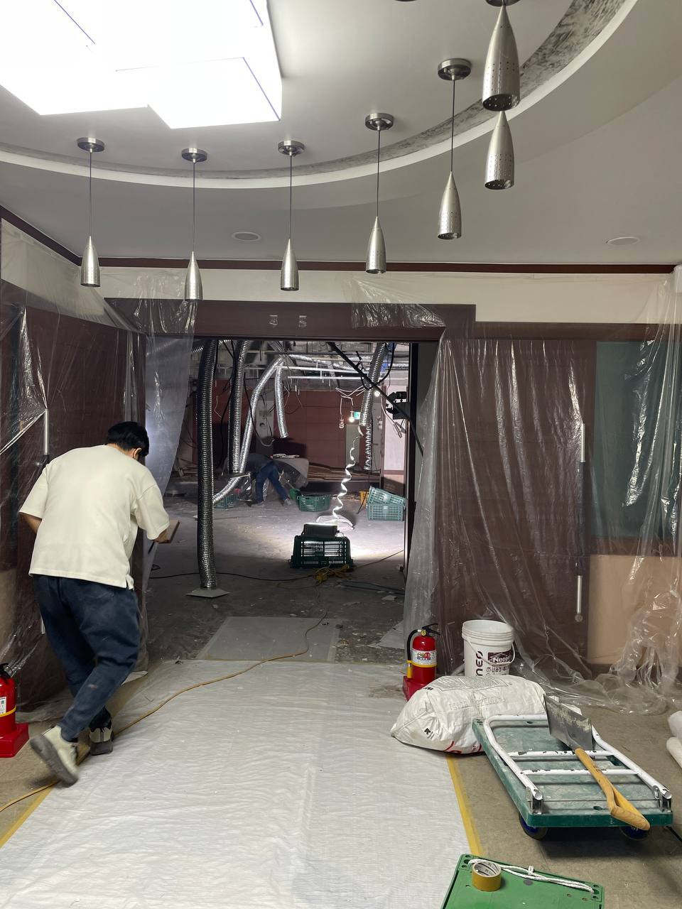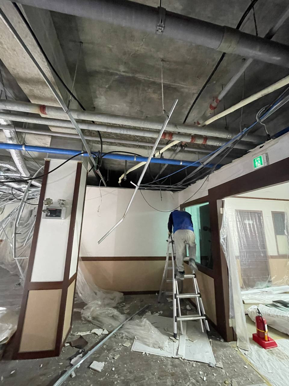 천정 철거작업을 하고 있습니다.