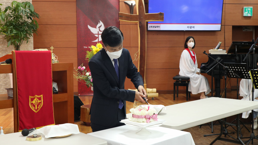 윤선희 집사님이 만든 떡 케이크와 중고등부의 축복송으로 모두 축복하였습니다.