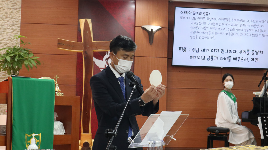 오직 주께서 우리에게 자비를 베푸셨기에 성찬 앞으로 나아갑니다.