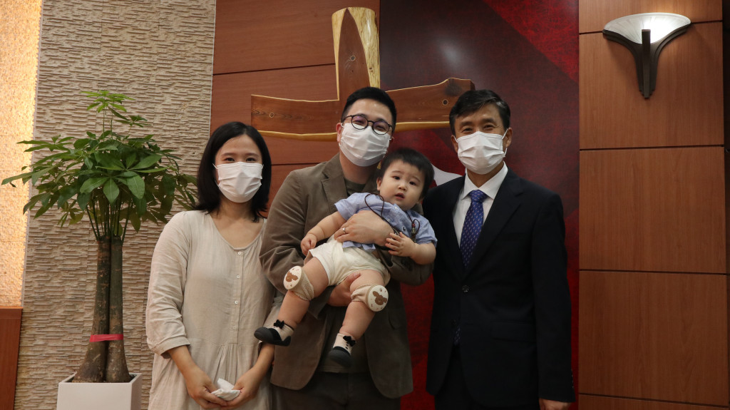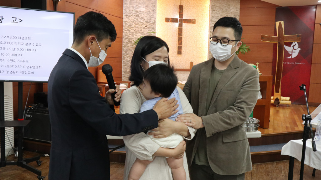 교회에서 만나 한 가정을 이룬 조민섭 가정이 어느덧 세 식구가 되어 교회로 찾아왔습니다.