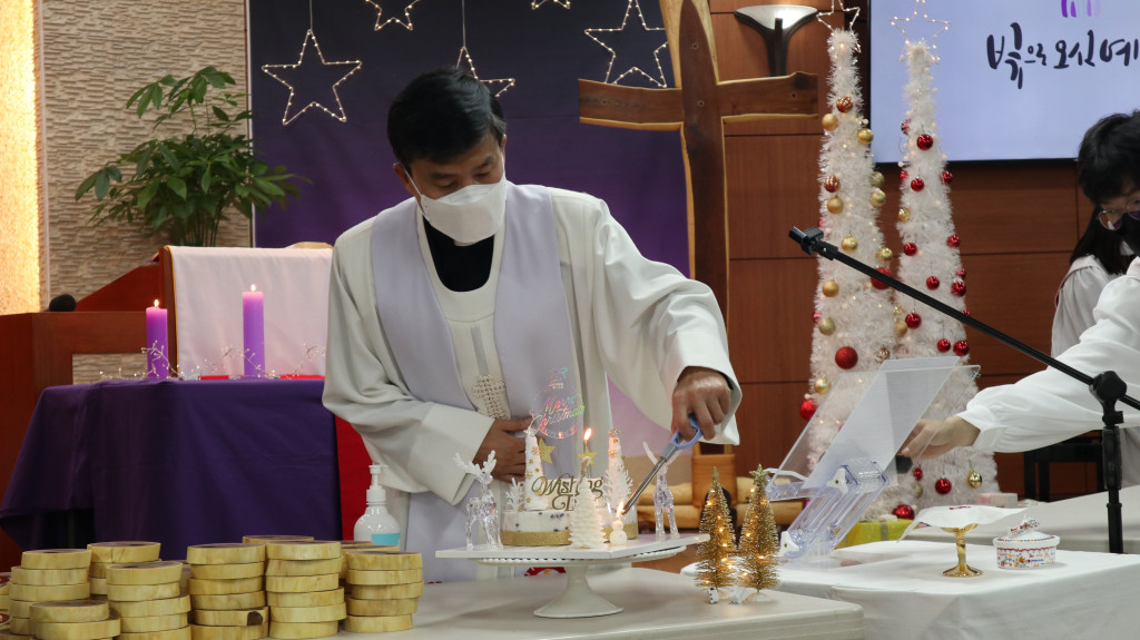 어른 대표로 홍순영 성도와 성낙원 집사가 성탄절 초를 밝혔습니다.