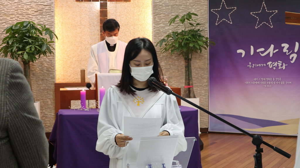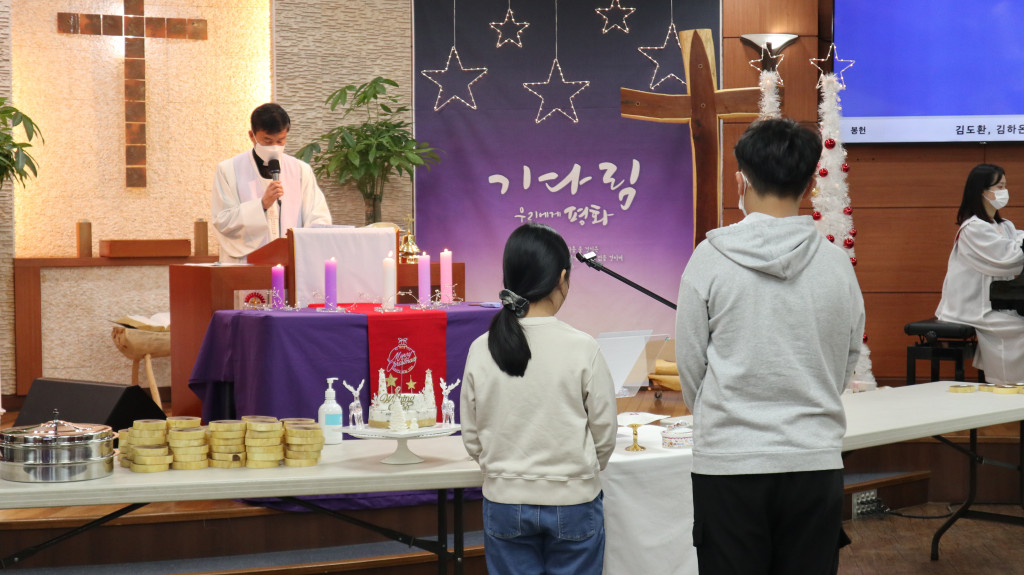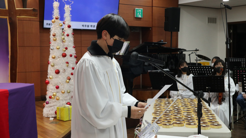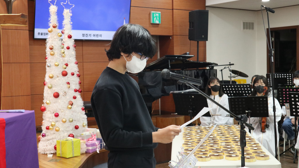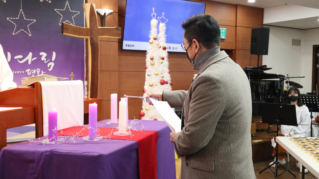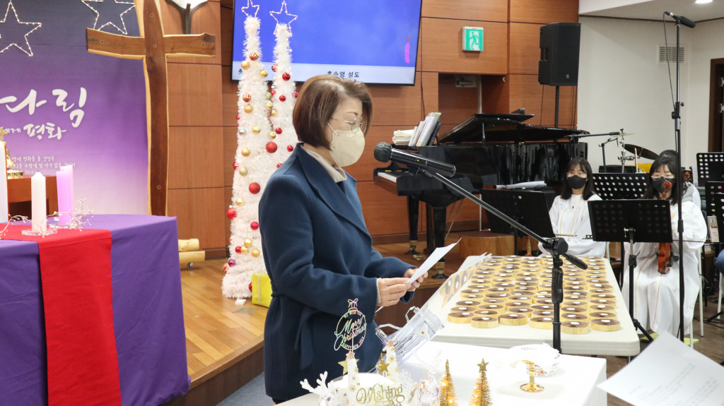 어른 대표로 홍순영 성도와 성낙원 집사가 성탄절 초를 밝혔습니다.