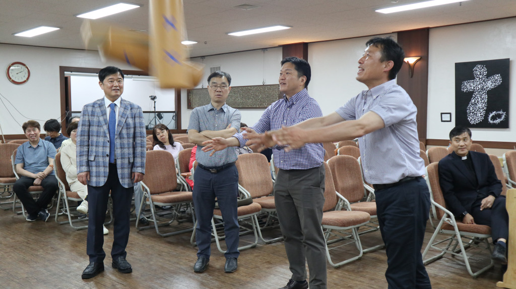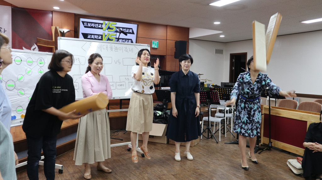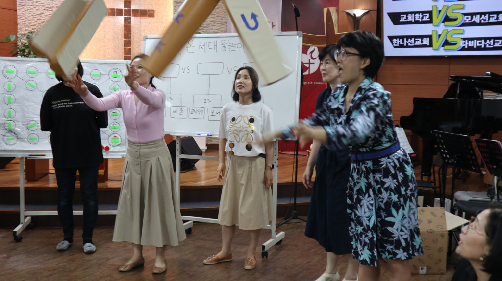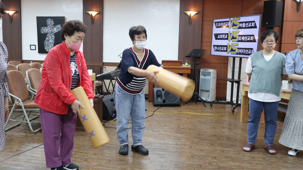 총 6팀으로 모세선교회, 한나선교회, 바울선교회, 드보라선교회, 다비다선교회, 교회학교가 본당에 함께 모여 윷놀이를 하였습니다.