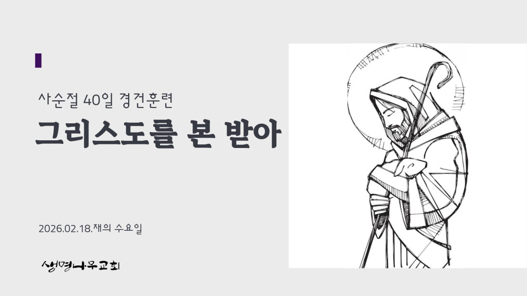 이 기간 동안에 생명나무교회에서는 성도님들의 사순절의 여정에 영적인 마중물이 되길 바라며